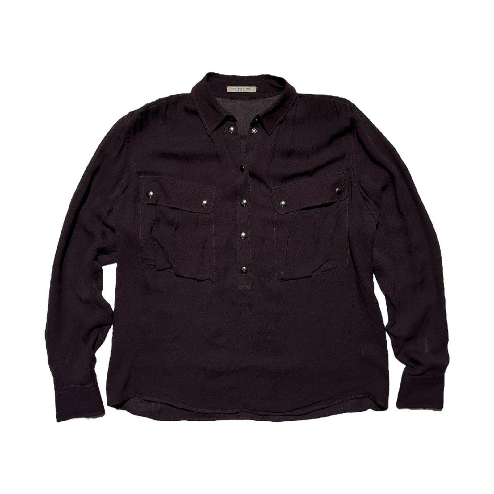 Deep brown elegant full silk shirt with half snap button design & 2 cargo pockets at front. Shoulders: 16.5”Pits: 21”Length: 24.5”Sleeve: 24”Shipping Policy• Please allow 2-5 business days for us to process and ship your order. When your order ships, you will receive your tracking number via email.Refund Policy• All sales are final.