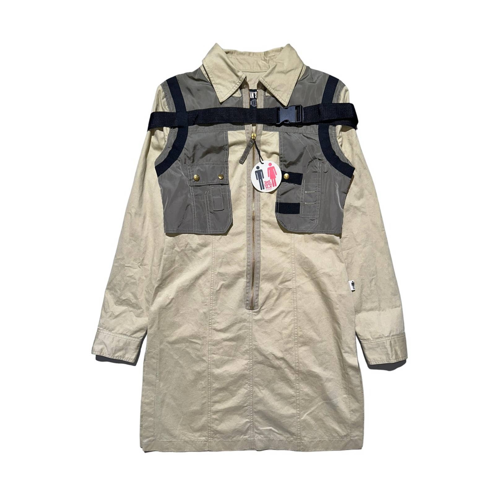 featuring the bondage/parachute-style buckle-detailing, straps throughout, and pocketing everywhere. Quite hard to come by in a bigger size like this! Tagged with a women's size 44. Tags attached! Rare find.