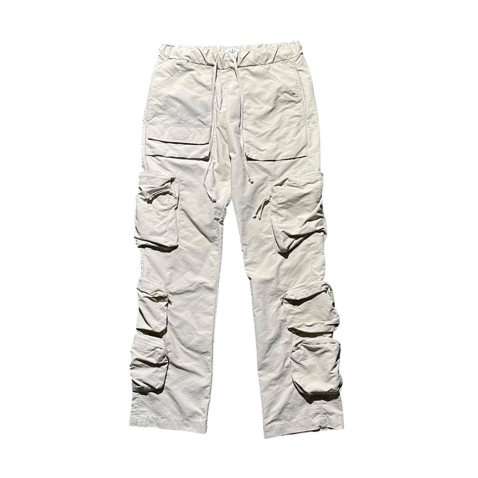 A sturdy nylon pant with 6 3D pockets, a nice baggy fit, & adjustable waist band. Perfect everyday cargo Waist: 32-35”Rise: 12”Inseam: 30”Leg Opening: 8”Shipping Policy• Please allow 2-5 business days for us to process and ship your order. When your order ships, you will receive your tracking number via email.Refund Policy• All sales are final.