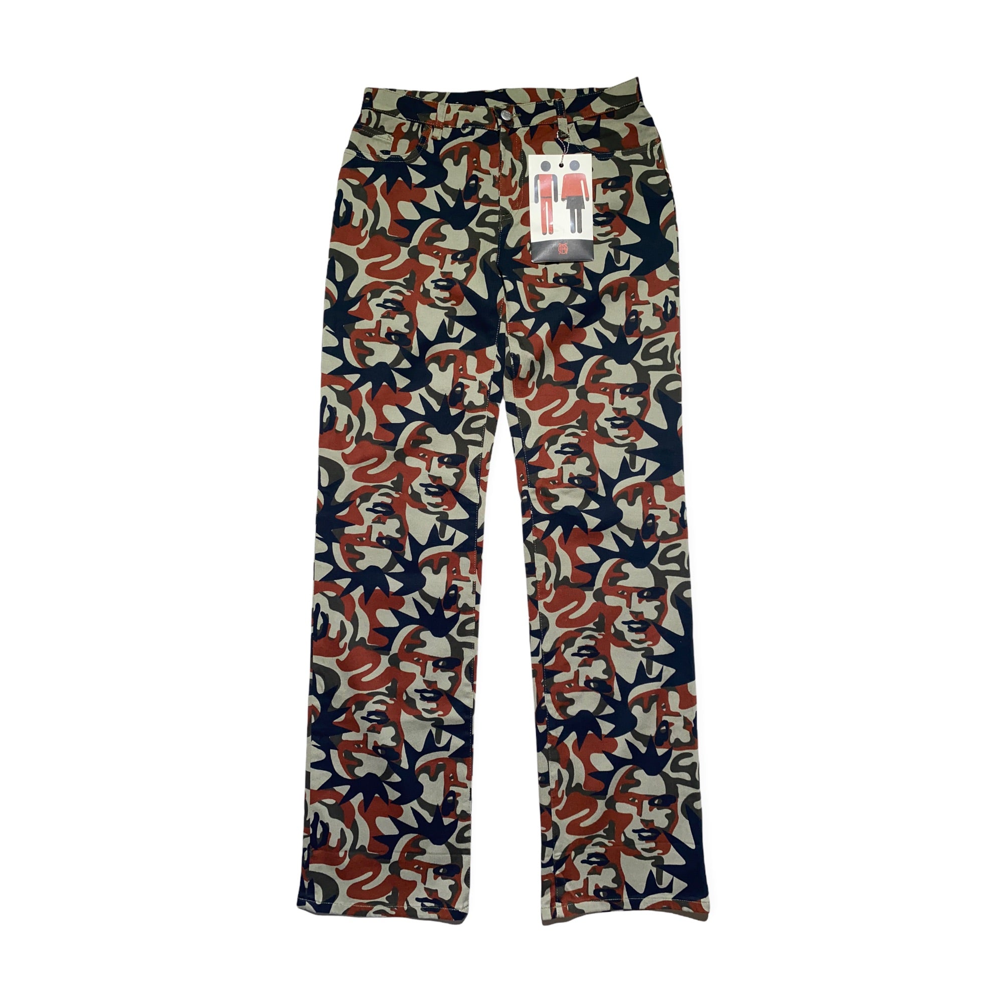 Insane statement pant. Made of 97% cotton and 3% elastane (for added stretch and comfort). A camouflage style print of punk rock face repeated pattern. “JPG JEANS” logo tab at back in red. Graphic logo tab at side. Great fit!
