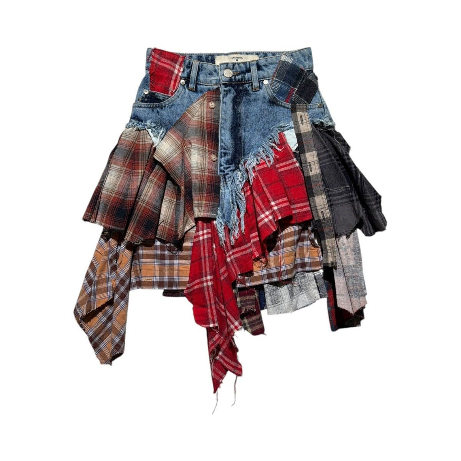 Deconstructed mini skirt made of denim with flannel layers throughout. Waist:24”Rise: 13”FOLLOW US (IN BIO) ! CRAZY ITEMS DAILYDON’T OFFER IF YOU CANNOT PAY SAME DAYTHESE ARE PICTURES OF THE ACTUAL ITEM.NO REFUNDS , BUY WITH CONFIDENCE, ALL ITEMS AUTHENTIC