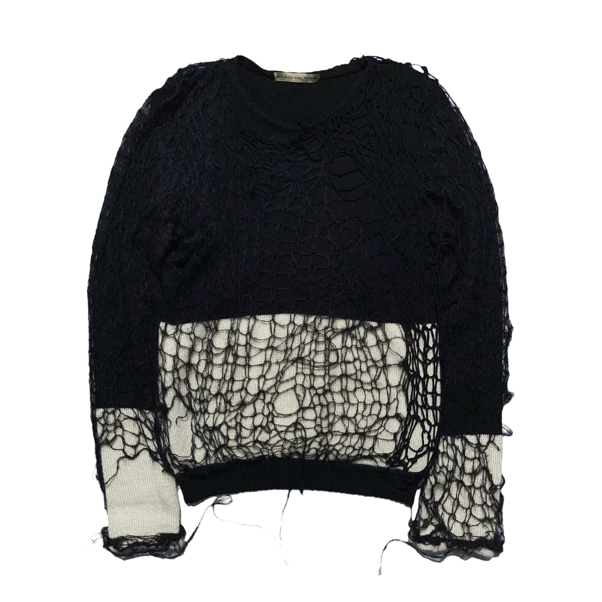 From the FW07 collection. An beautifully made piece from Nicolas Ghesquière's run at Balenciaga. Arguably the best designer from the house. A closely knitted two-tons sweater with a loose grunge like layer overlay throughout garment that only gets better as you wear it. Super rare.