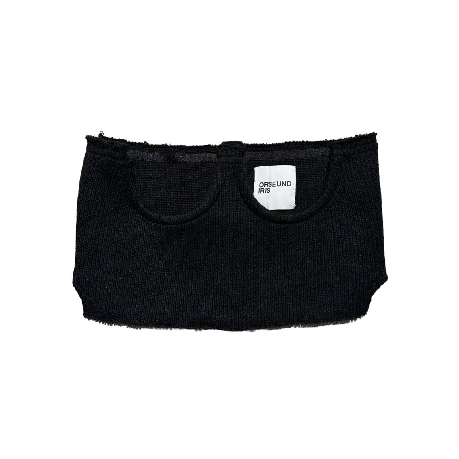 A cool accessory for any outfit. A stretchy ribbed fabric velcro strap bustier top that’s cut out at breast to define the outline of them.
