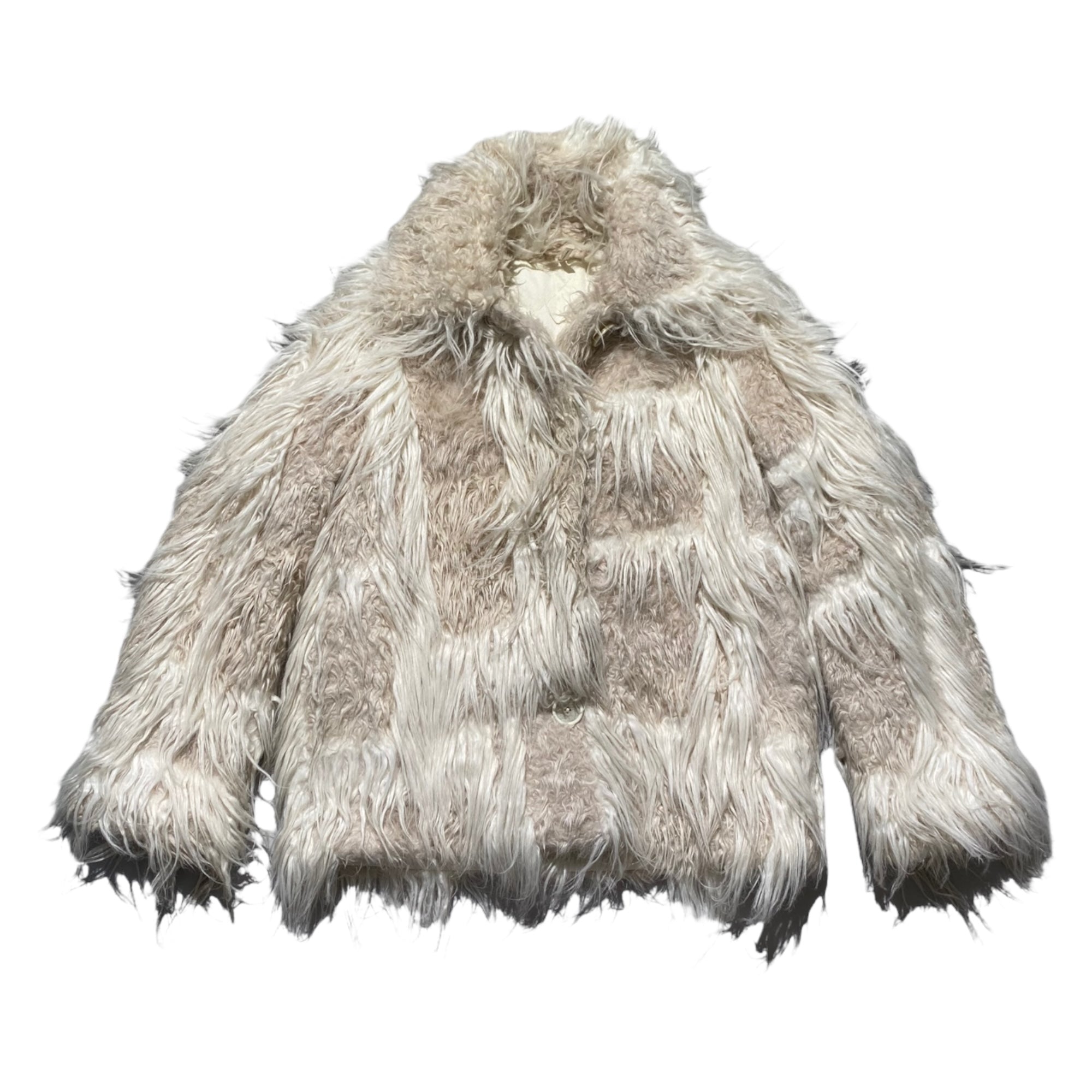 A Faux fur shaggy jacket. Cream/beige color and big button closure