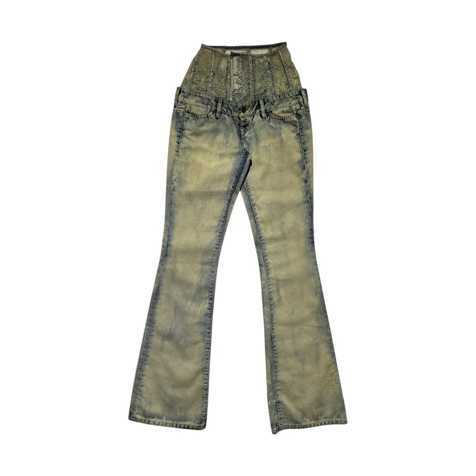 Retail $995. Bootcut style with a corset-like high waist and extra low waistband.the fabric is solarised for a sun-bleached look, combined with dévoré that exposes the inner fabric construction to create a feminine lace effect. essential blue washed monogram faded denim. Size 26, measures a 29/30 waist. In stores now. Waist: 30”Rise: 6”Inseam: 34”Leg Opening: 9.5”Shipping Policy• Please allow 2-5 business days for us to process and ship your order. When your order ships, you will receive your tracking number via email.Refund Policy• All sales are final.