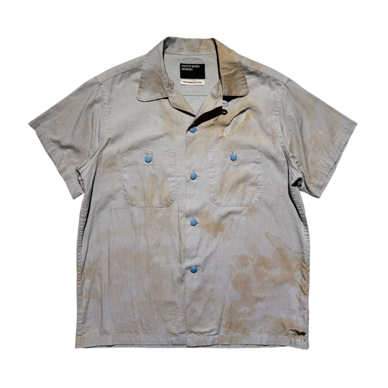 Fine cotton Italian made shirt inspired by vintage design. Distressing and mud washed throughout. Shoulders: 16”Pits: 20.5”Length: 25”Sleeve: 7”Shipping Policy• Please allow 2-5 business days for us to process and ship your order. When your order ships, you will receive your tracking number via email.Refund Policy• All sales are final.