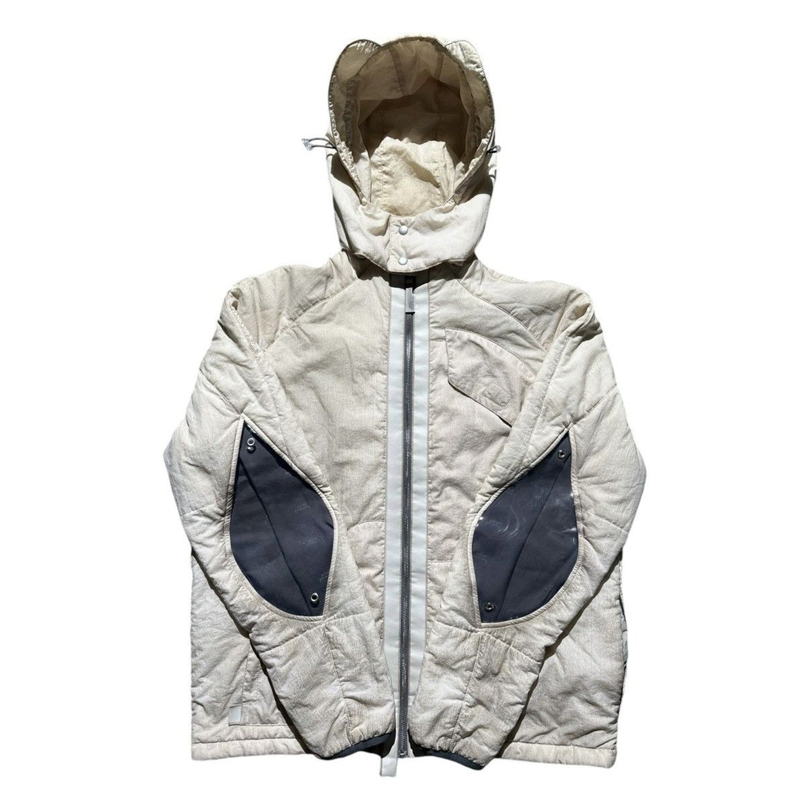 A washed beige nylon padded jacket with a quality feel and great cut. Transparent cut out panels at sleeves. Hooded. Shoulders: 21”Pits: 23”Length: 28”Sleeves: 25”Shipping Policy •Please allow 2-5 business days for us to process and ship your order. When your order ships, you will receive your tracking number via email.Refund PolicyAll sales are final.