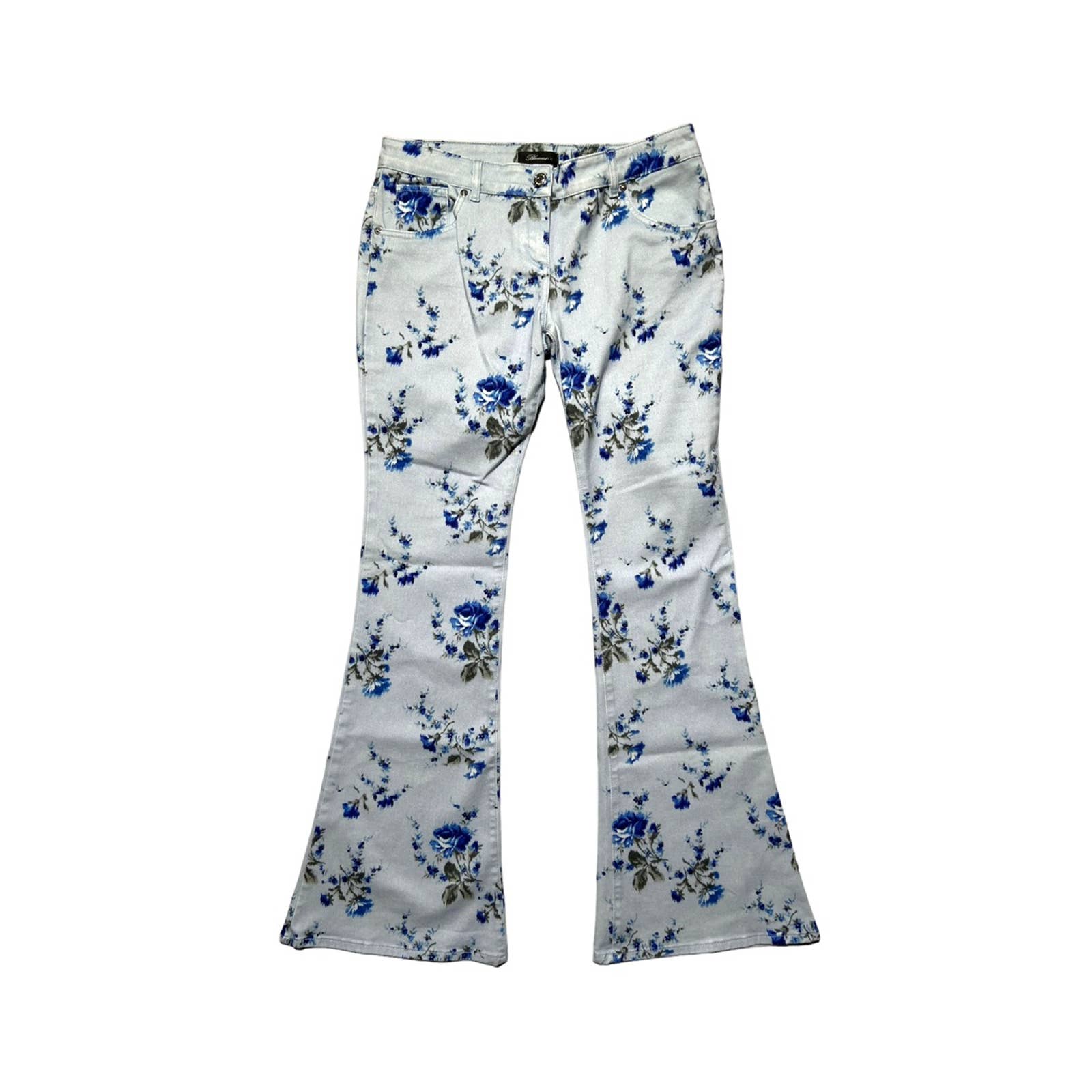 A light weight denim with floral print throughout and a great fitting with flared bottoms.New with tags. Waist:34”Rise:9”Inseam:36”Leg Opening:13 Shipping Policy  •Please allow 2-5 business days for us to process and ship your order. When your order ships, you will receive your tracking number via email. Refund Policy All sales are final.