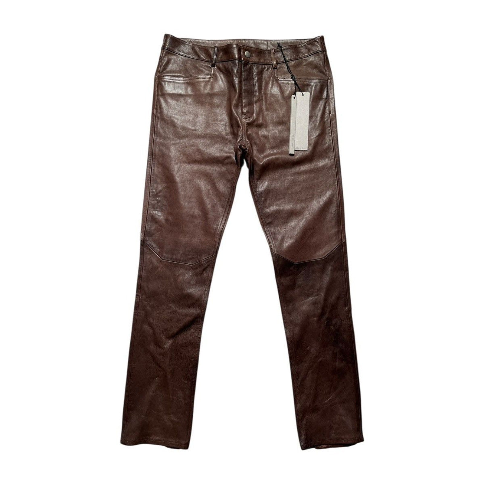 MSRP: $3,000Quality study leather Brown colorway. Perfect fit. Great condition! with tagsWaist:36”Rise:11”Inseam:30”Leg Opening:7”Shipping Policy• Please allow 2-5 business days for us to process and ship your order. When your order ships, you will receive your tracking number via email.Refund Policy• All sales are final.