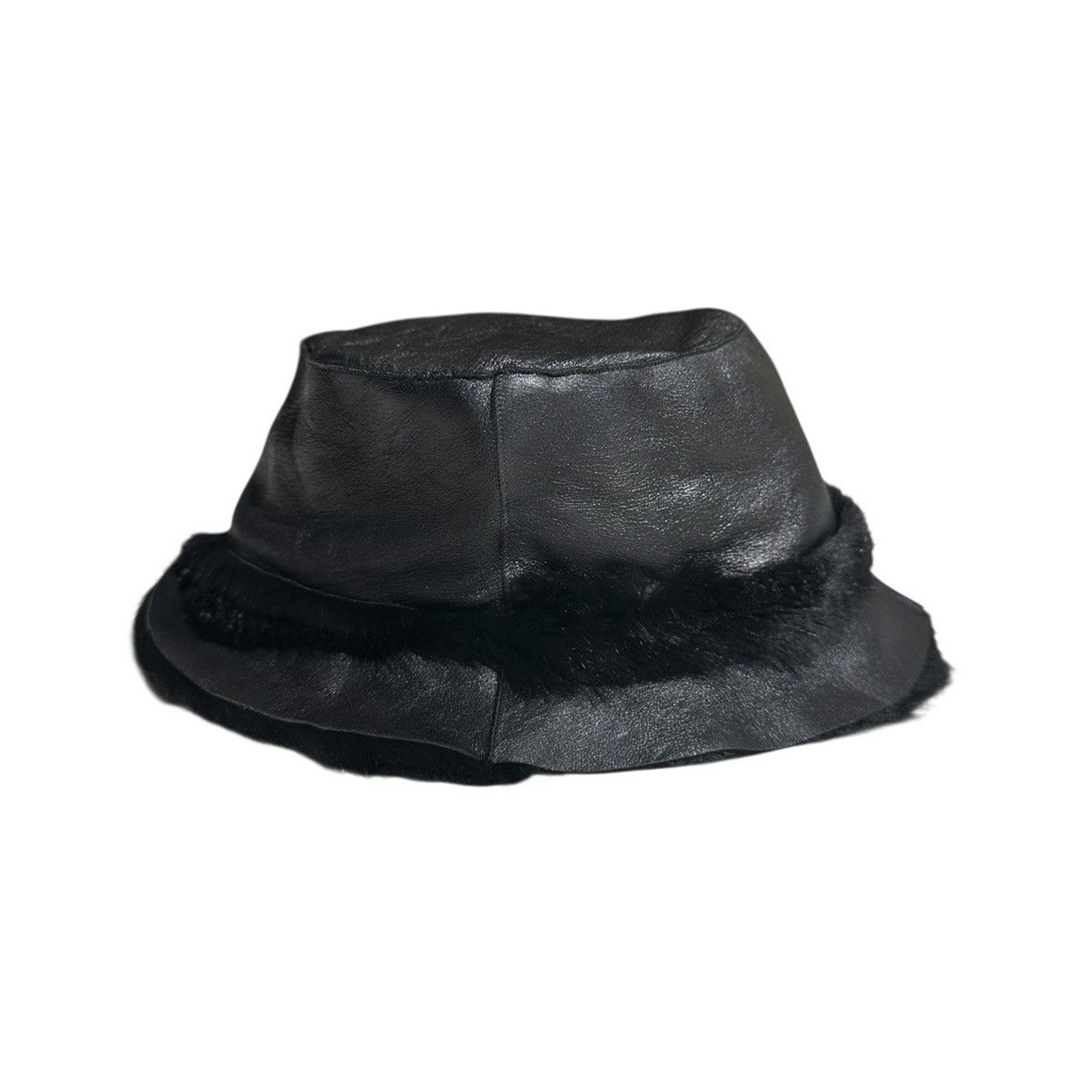 Beautifully made , deep, black leather bucket style hat, with real fur lining and accents throughout.Shipping Policy• Please allow 2-5 business days for us to process and ship your order. When your order ships, you will receive your tracking number via email.Refund Policy• All sales are final.