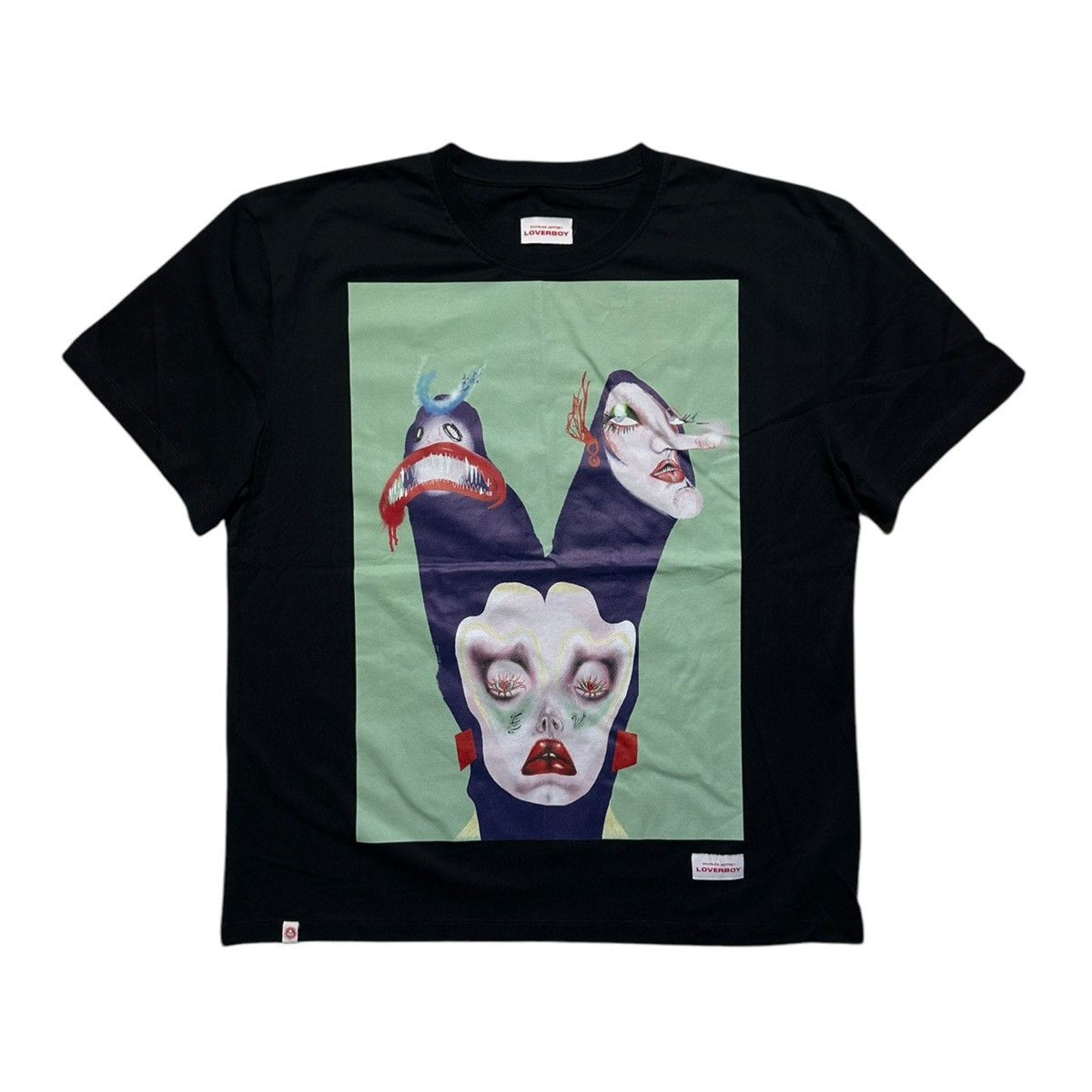 A quality black tee with thick multicolor graphic at frontShoulders: 21.5”Pits: 23”Length: 28”Sleeves: 9”Shipping Policy• Please allow 2-5 business days for us to process and ship your order. When your order ships, you will receive your tracking number via email.Refund Policy• All sales are final.