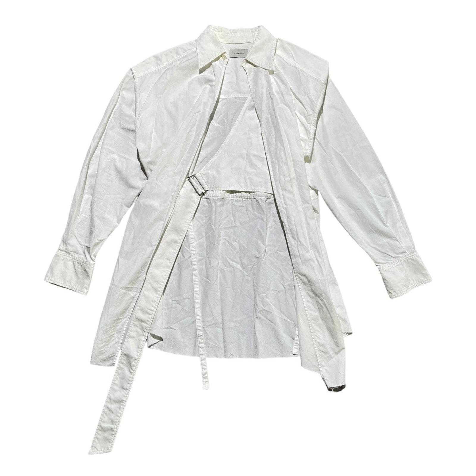 A crazy update to a closet essential. Classic white button down with an avant-garde fit, one button closure, adjustable harness strap that sits at your chest allowing you to wear this off the shoulder and so many other ways. Pits: 18”Shoulders: 21”Length: 33”Sleeves: 23”Shipping Policy• Please allow 2-5 business days for us to process and ship your order. When your order ships, you will receive your tracking number via email.Refund PolicyAll sales are final.