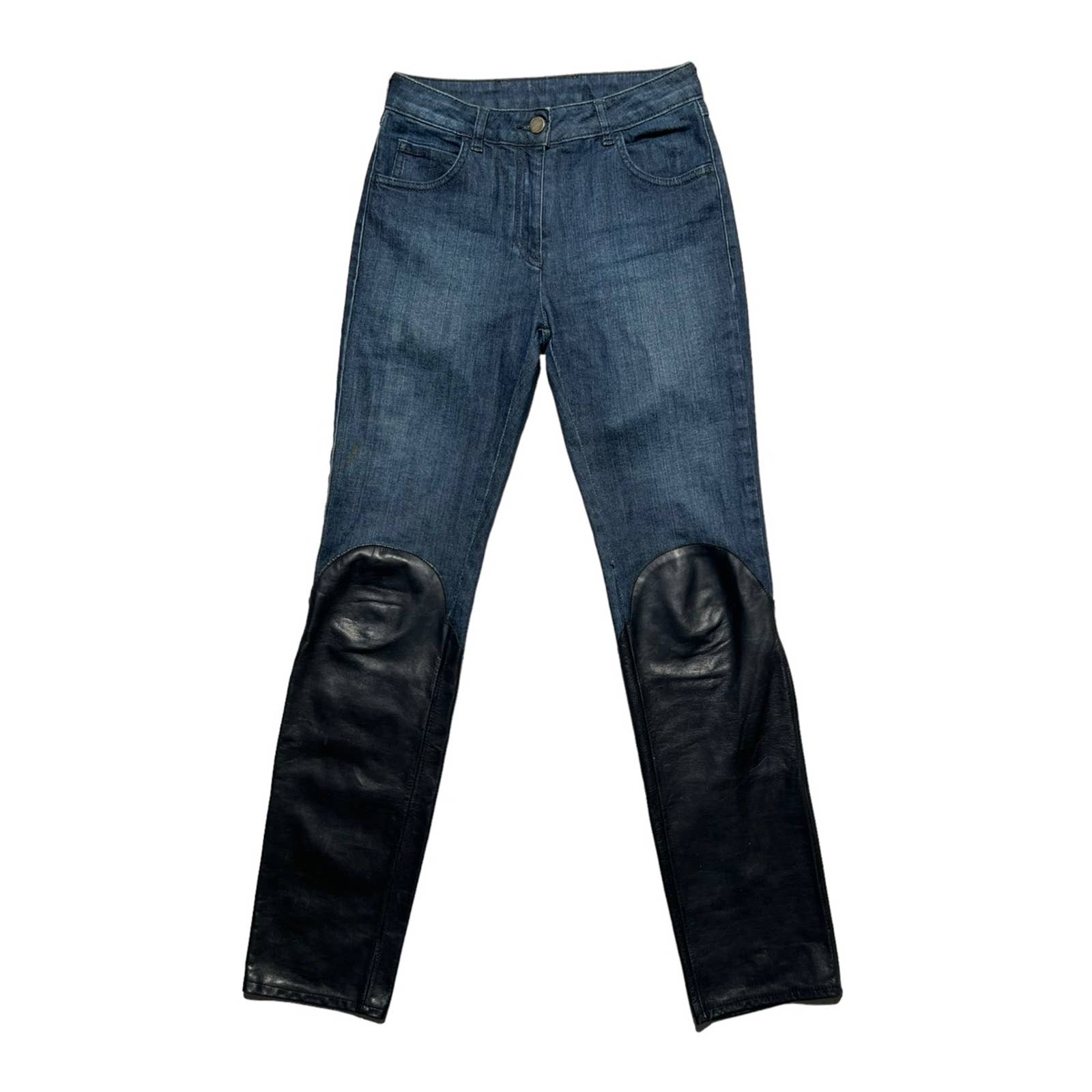 In collaboration with Opening Ceremony. The perfect wardrobe staple. A deep wash blue jean with classic black genuine leather bottom. Has a bit of stretch. Great condition. Rare collab.