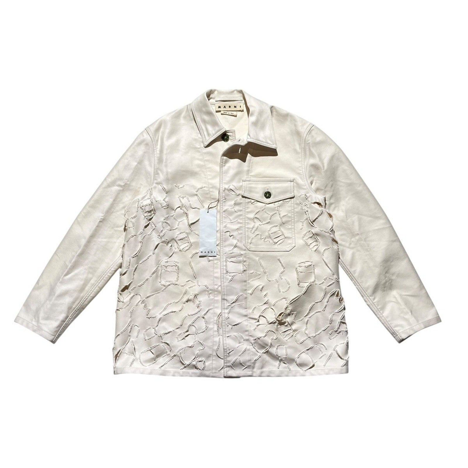 Runway marni piece. Sturdy cotton cream jacket with laser cut design and insane unique buttons.Shoulders:18”Pits:21”Length: 32”Sleeve:24”Shipping Policy• Please allow 2-5 business days for us to process and ship your order. When your order ships, you will receive your tracking number via email.Refund Policy• All sales are final.