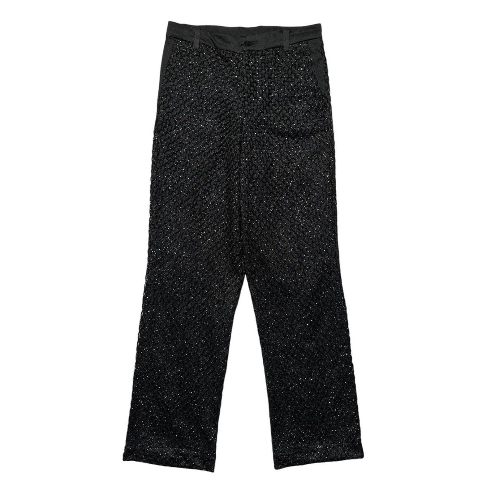 A statement piece. An essential trouser with an added layer of netted fabric with lurex fabric that shines. The fit of these is incredible, with a fit that’s not too skinny & goes perfectly over the shoe.Waist: 30”Rise: 12.5”Inseam: 31”Leg Opening: 9”Shipping Policy• Please allow 2-5 business days for us to process and ship your order. When your order ships, you will receive your tracking number via email.Refund PolicyAll sales are final.