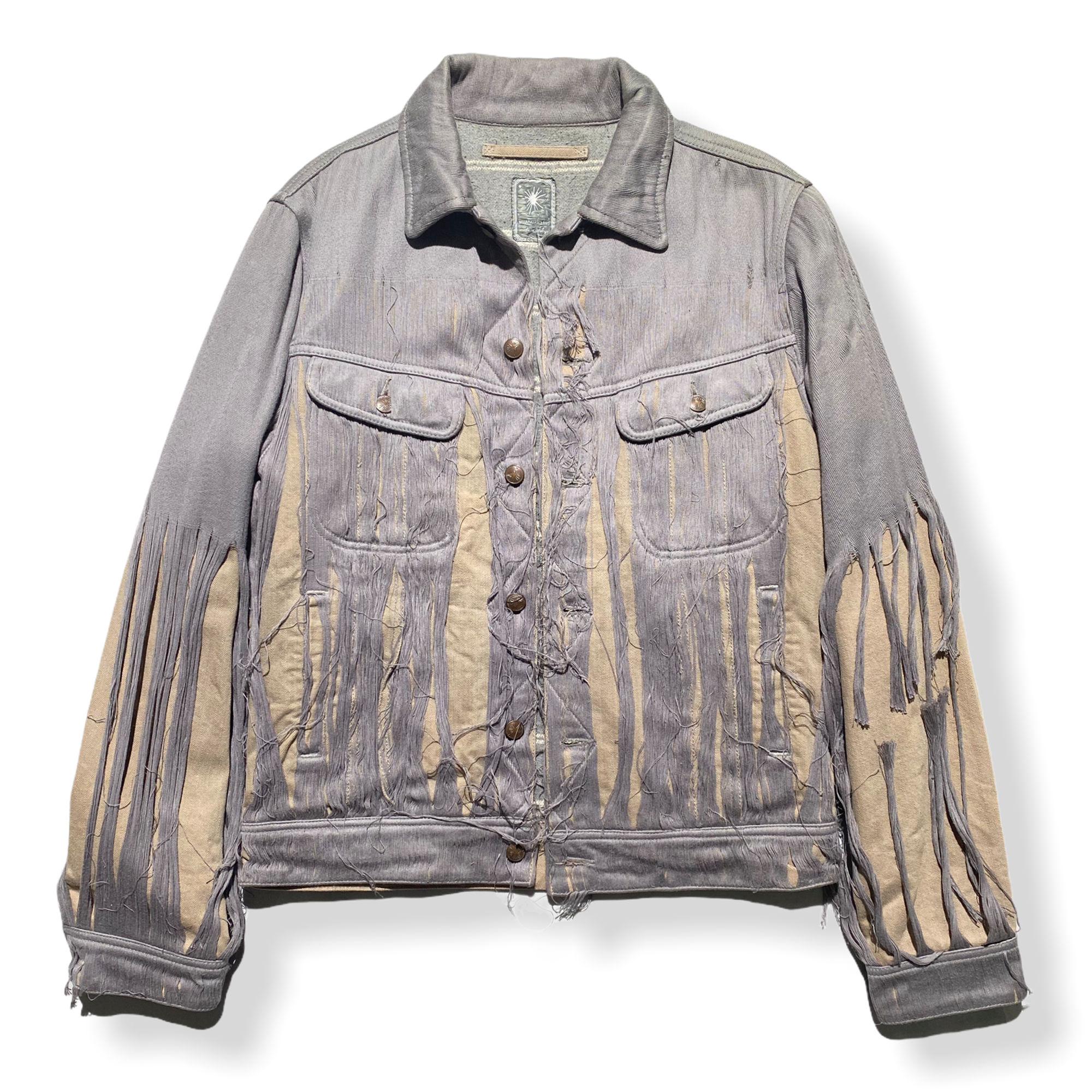 From the 2007 collection. One of the most sought after from the brand. Trucker style jacket in a thick cotton material, with shredded elements throughout. A beautiful piece. Although it’s Japanese. This has A nice roomy fit so you can take your usual size !