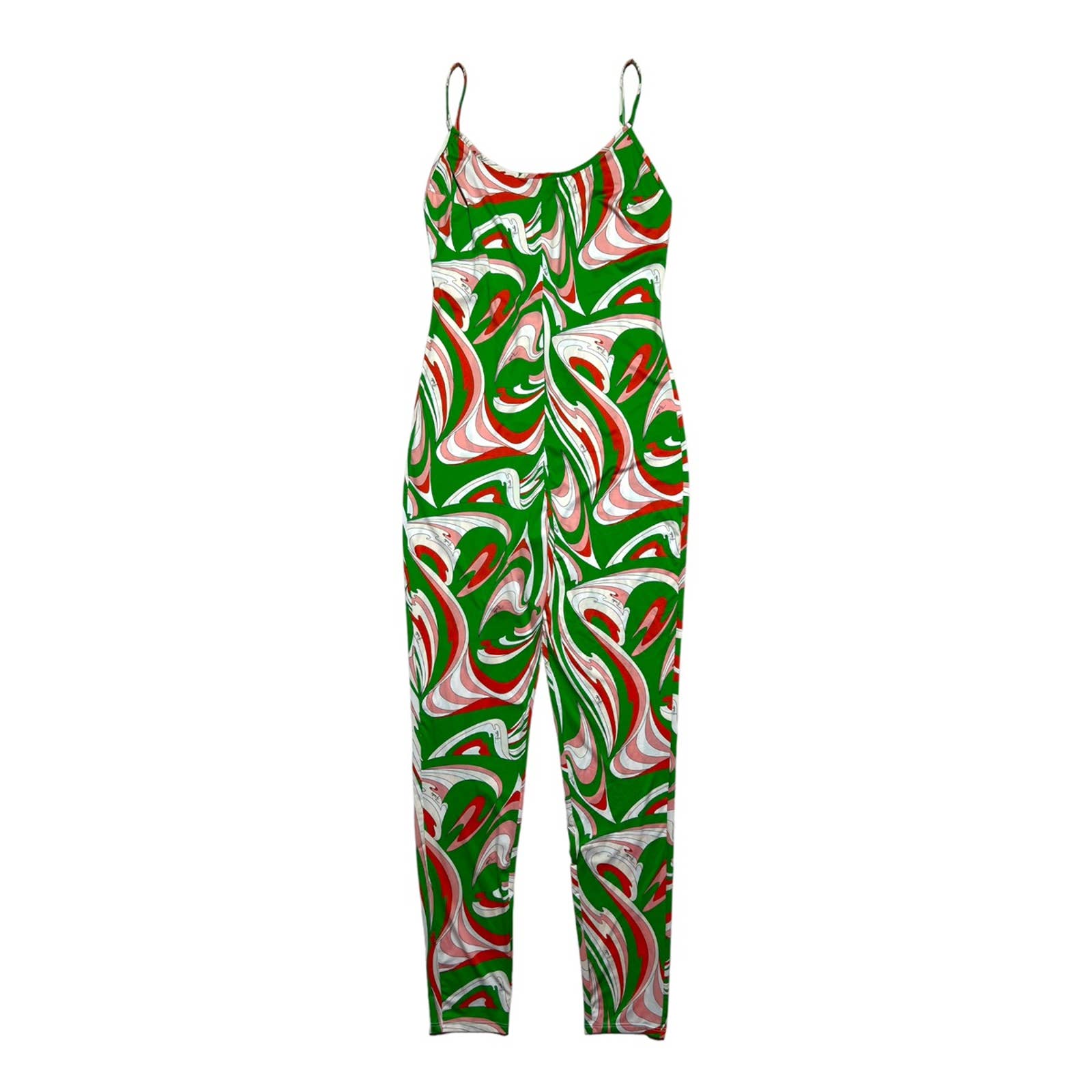 A lightweight, stretchy fabric bodysuit that contours to the body beautifully. A classic Pucci piece. Multicolor graphic throughout.