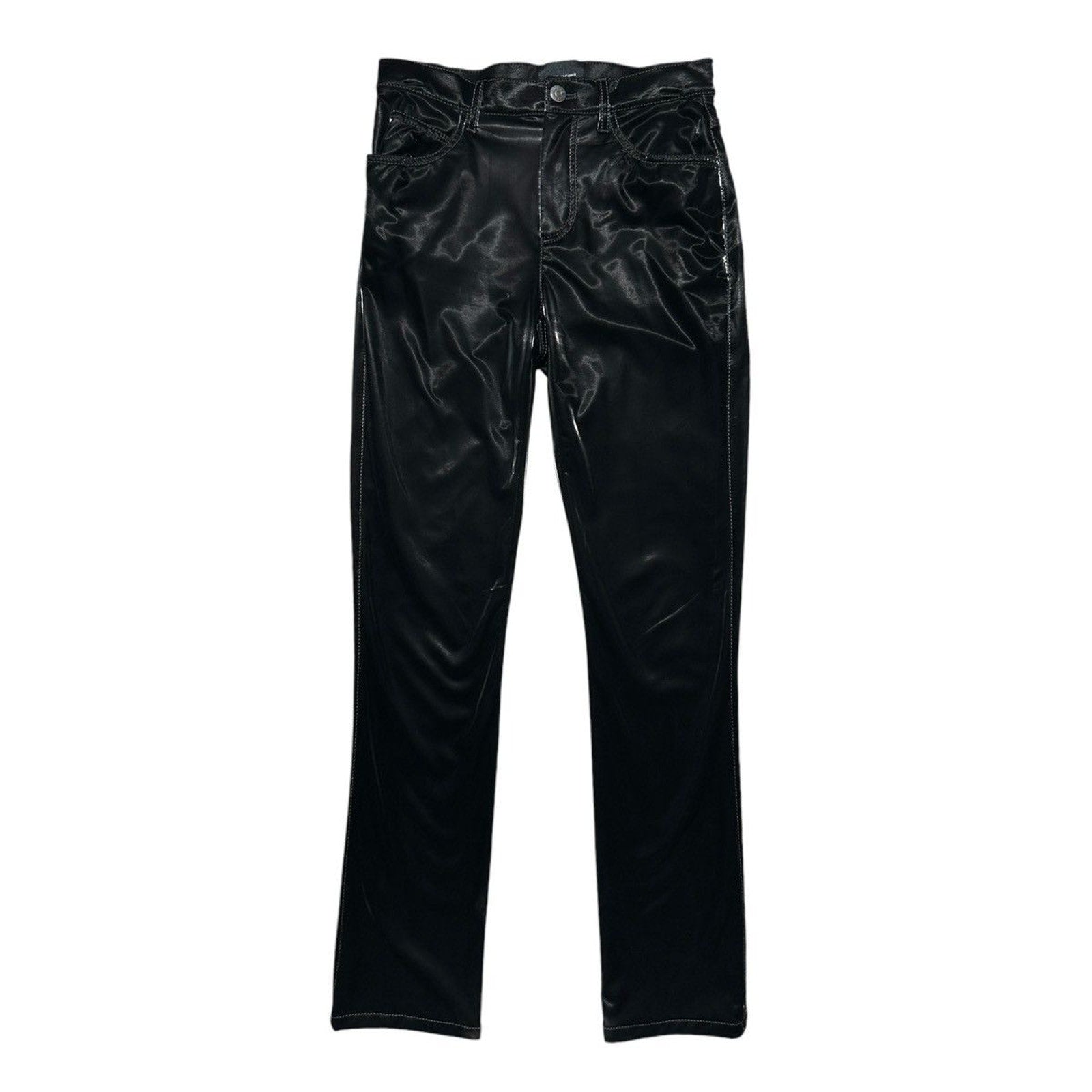 Deep black glossy slick pant. Incredible texture that’s not the norm. Semi stretchy for comfort.Waist: 27”Rise: 10”Inseam: 29”Leg opening: 6”Shipping Policy • Please allow 2-5 business days for us to process and ship your order. When your order ships, you will receive your tracking number via email.Refund PolicyAll sales are final.