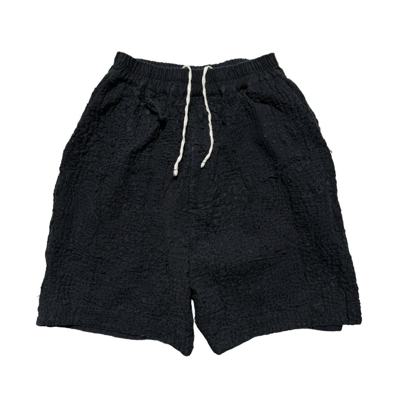 Handmade in England. Black thick cotton shorts with Boro and shashiko technique. Waist band with drawstrings that’s extremely adjustable!Waist: 22-34”Rise: 15”Inseam: 5.5”Leg opening: 12”Shipping Policy•Please allow 2-5 business days for us to process and ship your order. When your order ships, you will receive your tracking number via email.Refund PolicyAll sales are final.
