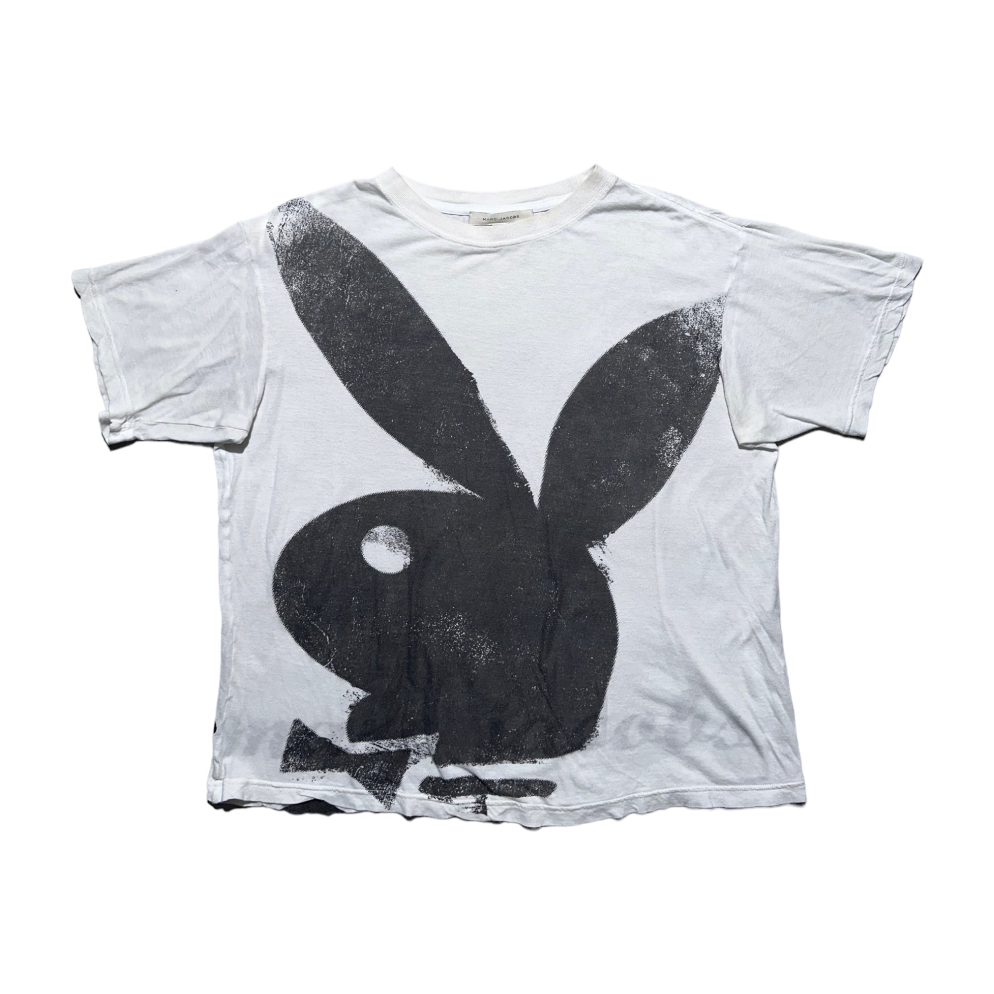 A fine cotton comfortable white t shirt with big graphic playboy logo print at front andMarc Jacobs script at back. Great relaxed fit.