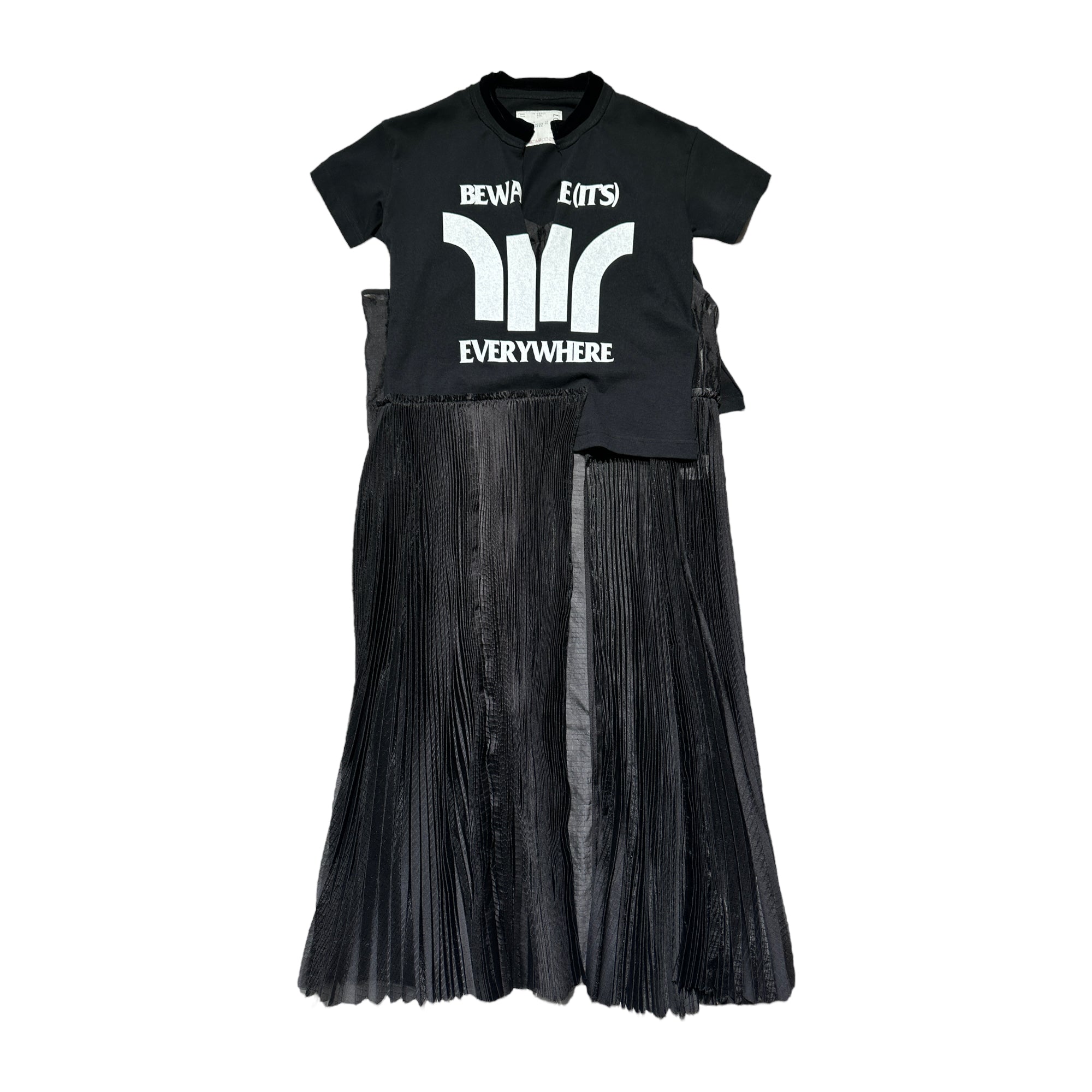 A quality Japanese made piece. Deep black thick cotton rock band style tshirt with a deconstructed dress attached and underneath. Velvet collar, and subtle details that make this piece superb.
