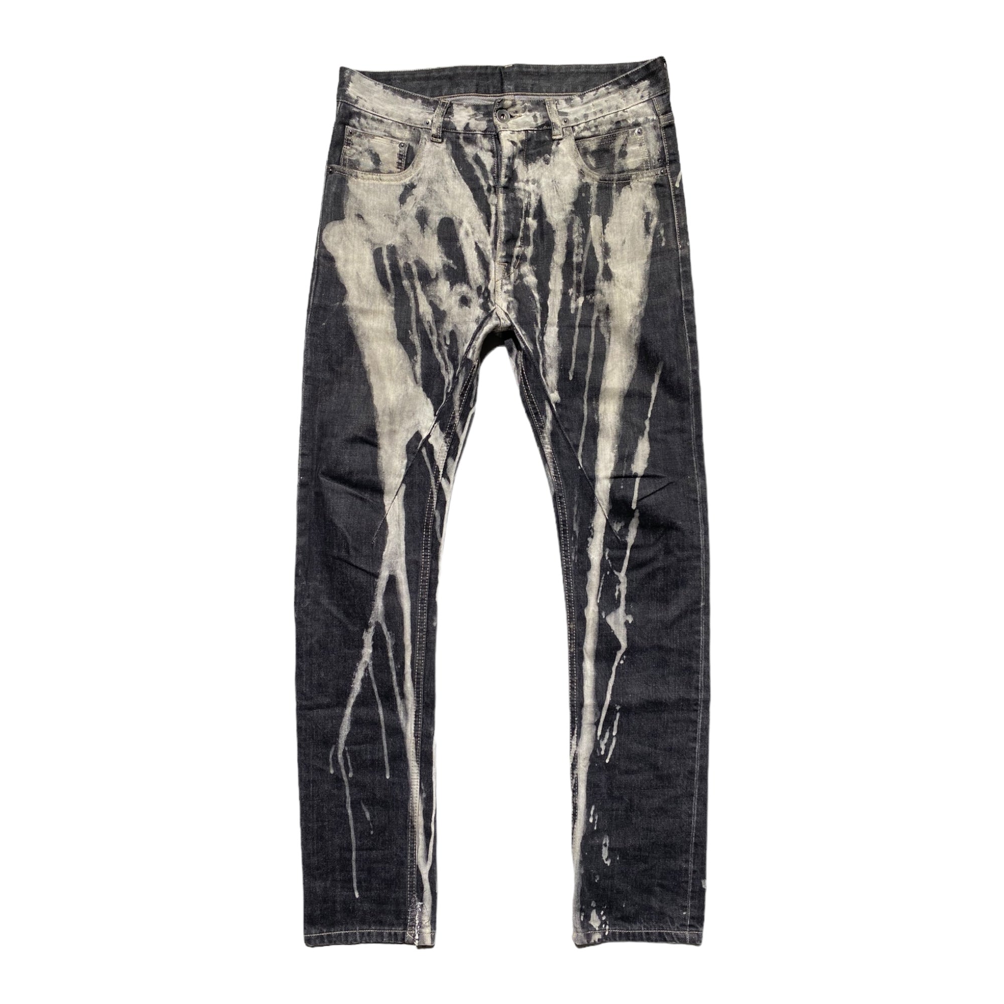 One of the most notable pairs. Style: “Torrence cut” , Color: “Vomit Bleach”. Quality rick denim, great slim skinny fit, and a standout graphic all over. Tagged size 30 but fits bigger like a 31-32