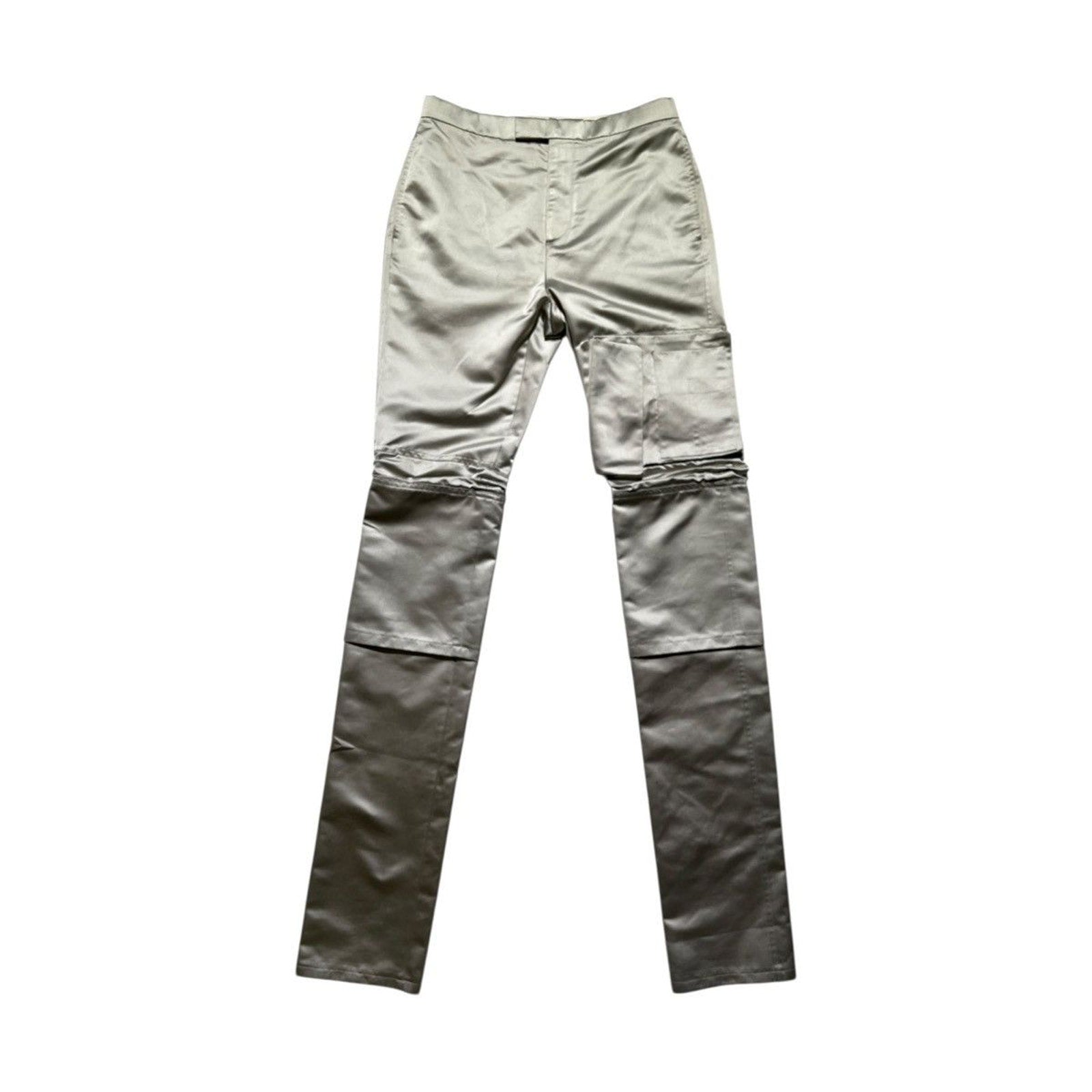 Metallic silver satin pant with a runched fit and multi pocket. Runway piece. Stain on back, can likely be dry cleaned. Shown on last picture. Waist: 29”Rise: 11”Inseam: 38”Leg Opening: 7”FOLLOW US (IN BIO) ! CRAZY ITEMS DAILYDON’T OFFER IF YOU CANNOT PAY SAME DAYTHESE ARE PICTURES OF THE ACTUAL ITEM.NO REFUNDS , BUY WITH CONFIDENCE, ALL ITEMS AUTHENTIC