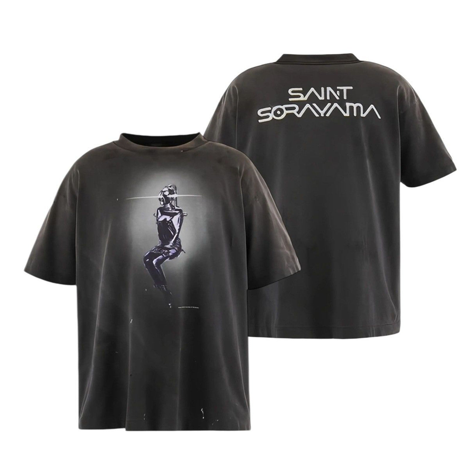 Heavyweight premium cotton T-shirt with a faded warn in look & graphics at front & back. Rare collaboration.