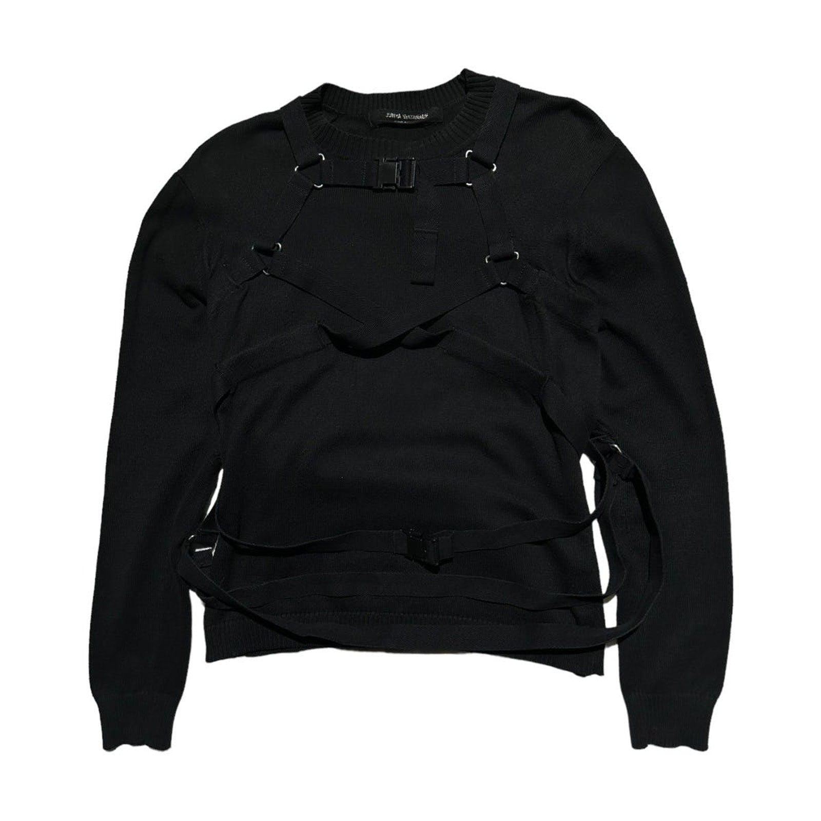 Undoubtably, one of the most notable collections from Junya Watanabe. A true archive grail. This rare piece features a woven yet breathable fabric, double layered, with bondage straps lined throughout the arms, back, and chest. This is the The adjustable straps make this piece easily able to fit male or female wearer in their desired way. Shoulders: 18”Pits: 18.5”Length: 25”Sleeve: 25.5”Shipping Policy • Please allow 2-5 business days for us to process and ship your order. When your order ships, you will receive your tracking number via email.Refund PolicyAll sales are final.