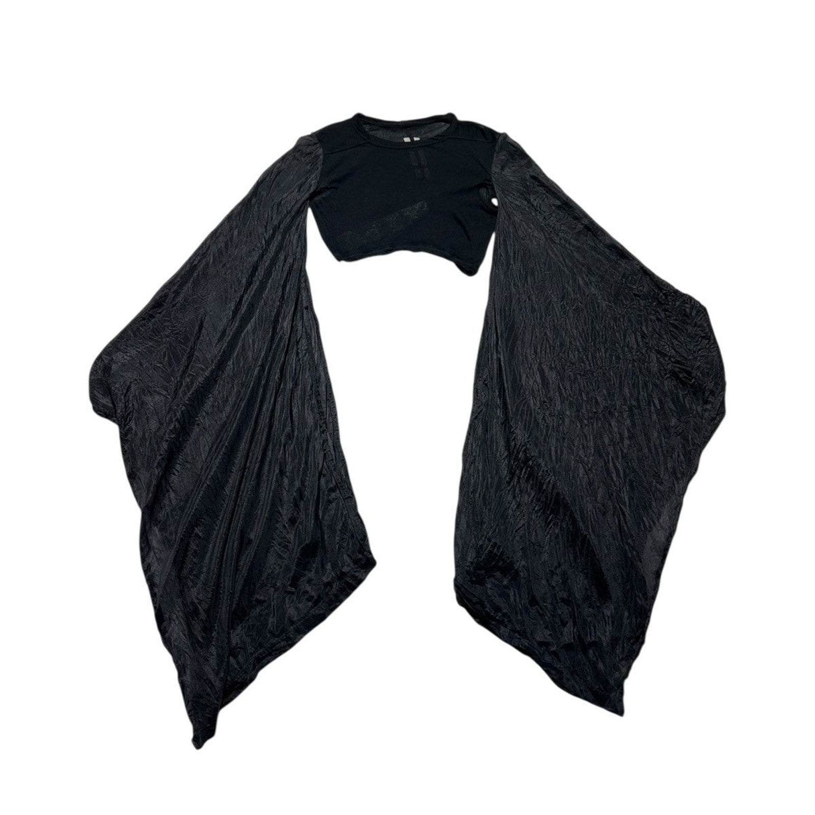 Essential black stretch cropped top with silky exaggerative sleeves. Very avant-garde. Flaw: slight tearing at underarm seams. Can be repaired. Priced accordingly. Shoulders:13”Pits:13”Length: 9.5”Sleeve:40”Shipping Policy• Please allow 2-5 business days for us to process and ship your order. When your order ships, you will receive your tracking number via email.Refund Policy• All sales are final.