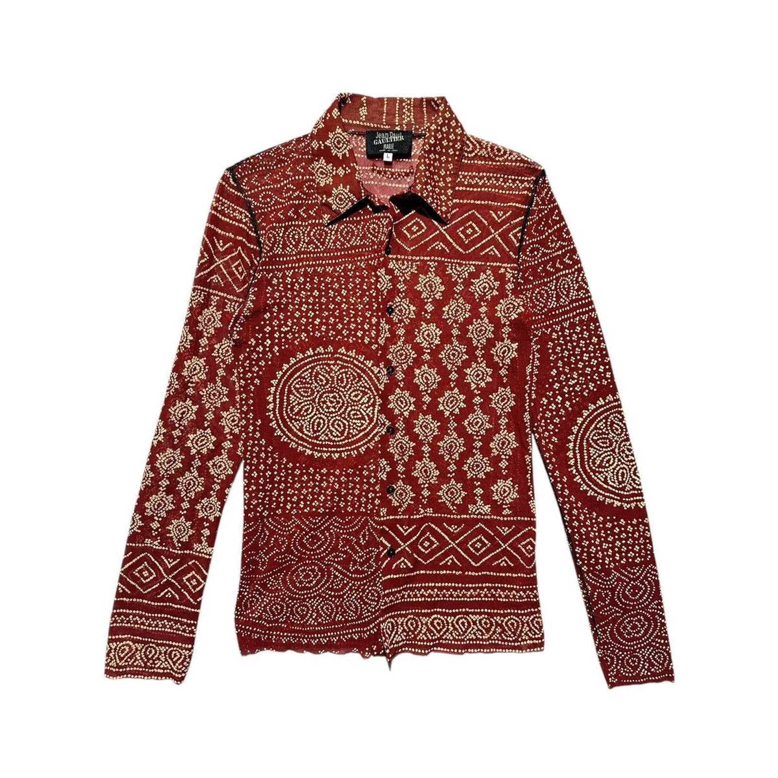 Rare button down iteration of the Beautiful tribal print design. VERY STRETCHY mesh top that fits almost any body style. Shoulders: 16”Pits: 17”Length: 27”Sleeve: 26.5”Shipping Policy• Please allow 2-5 business days for us to process and ship your order. When your order ships, you will receive your tracking number via email.Refund Policy• All sales are final.
