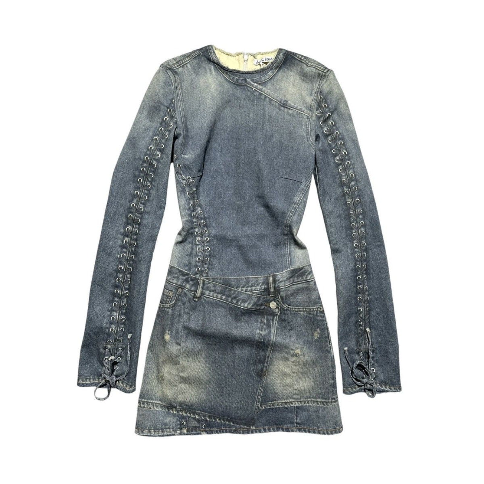 Retail: $800. New season! Acne Studios Long Sleeve Denim Illusion dress featuring a digital trompe-l'oeil print that masterfully mimics the textured, nuanced appearance of washed denim. Features zippered back, lacing at sleeve, & 3% elastic blend for stretch & comfortability. Shoulders: 14”Pits: 15.5”Length: 32”Sleeves: 26.5”Shipping Policy• Please allow 2-5 business days for us to process and ship your order. When your order ships, you will receive your tracking number via email.Refund PolicyAll sales are final.