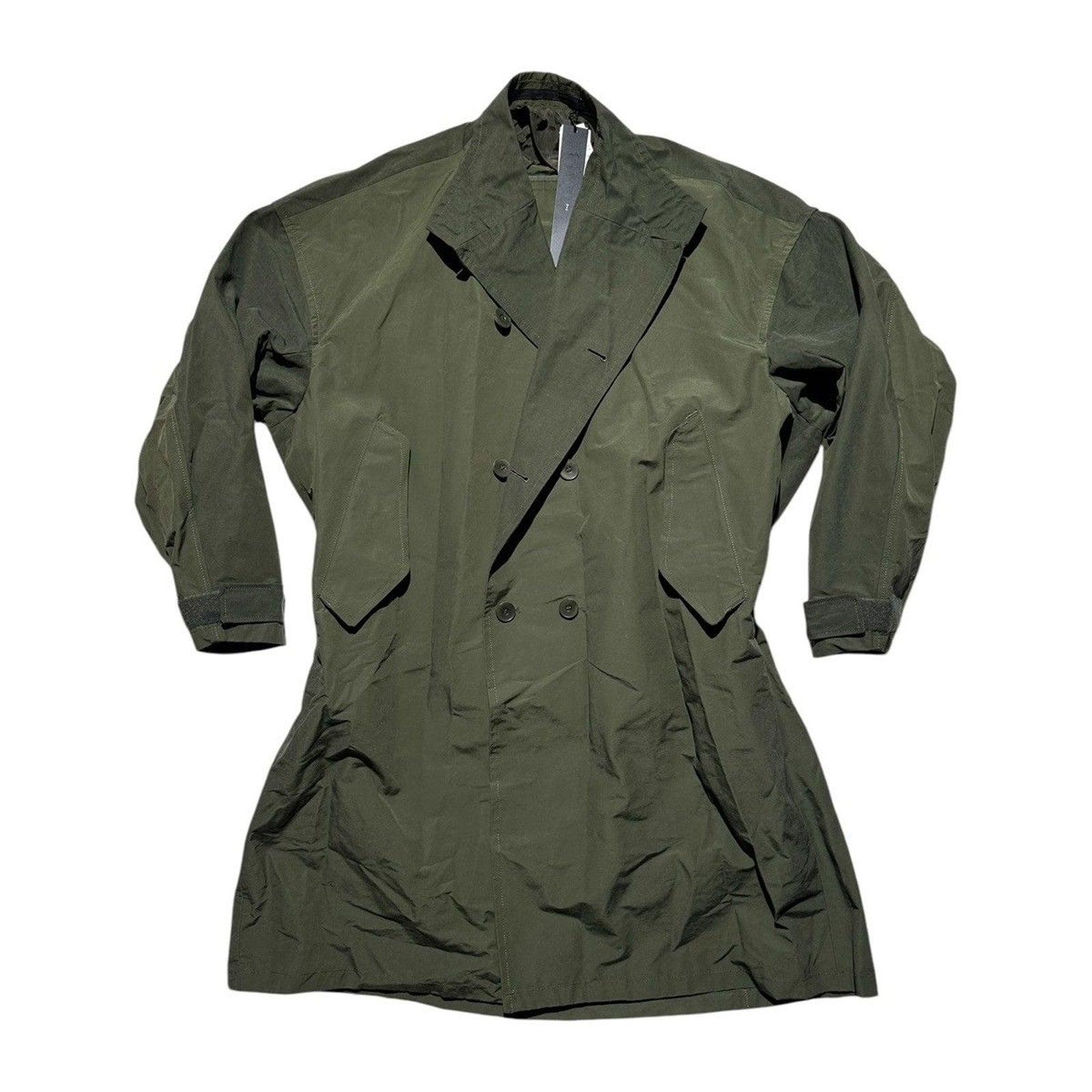 Beautiful deep green trench with a coated effect on the fabric and an oversized fit. Shoulders: 26”Pits: 31”Length: 43”Sleeve: 22”Shipping Policy• Please allow 2-5 business days for us to process and ship your order. When your order ships, you will receive your tracking number via email.Refund Policy• All sales are final.